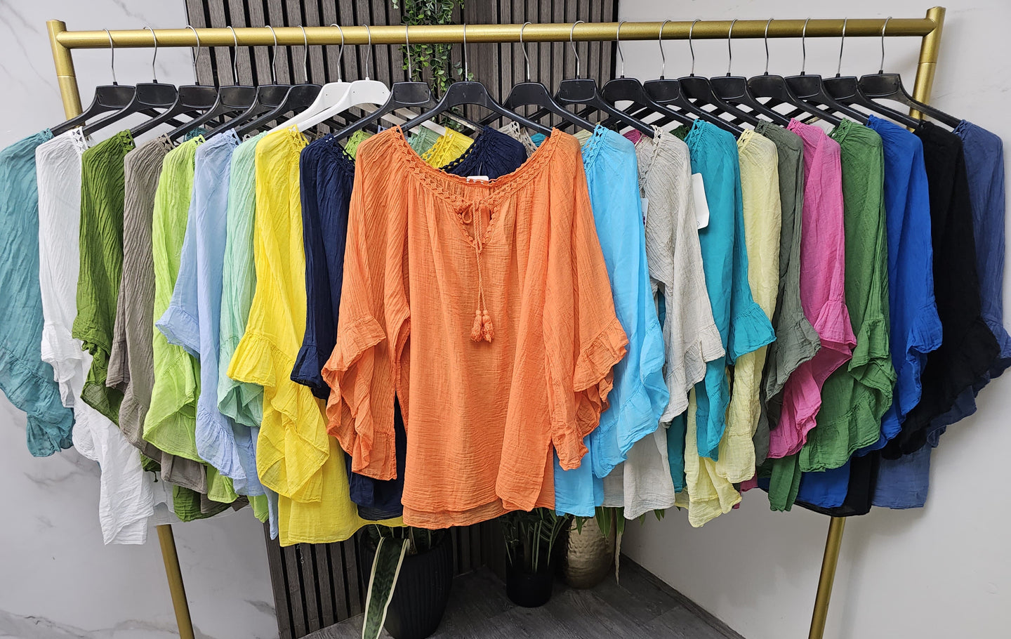 100% Cotton Top… Very lightweight and slightly sheer… One size fits from 6-18